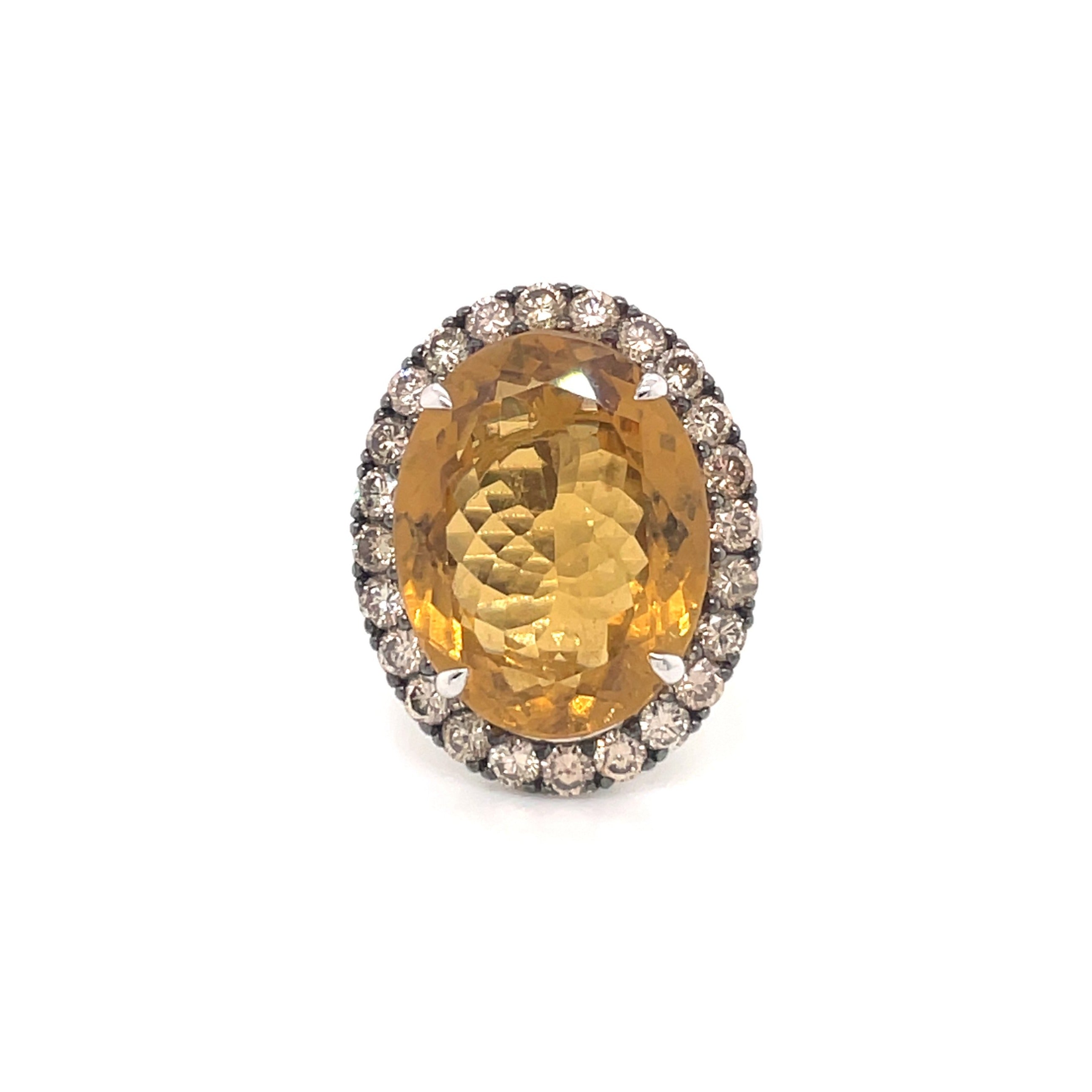 Fancy Diamonds Surrounding Yellow Tourmaline Ring