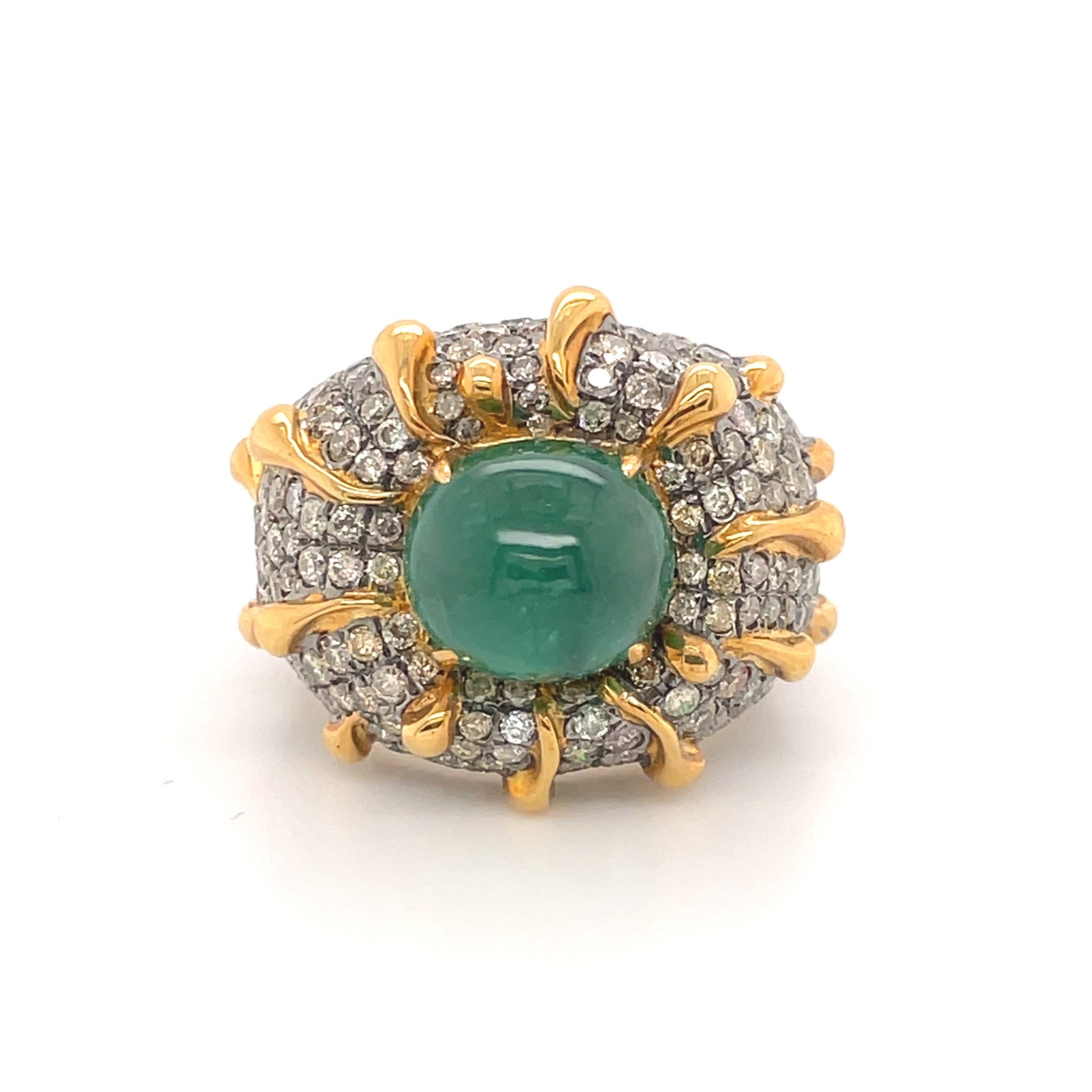 Emerald and Fancy Diamonds Studded Gold Rain Drops Ring