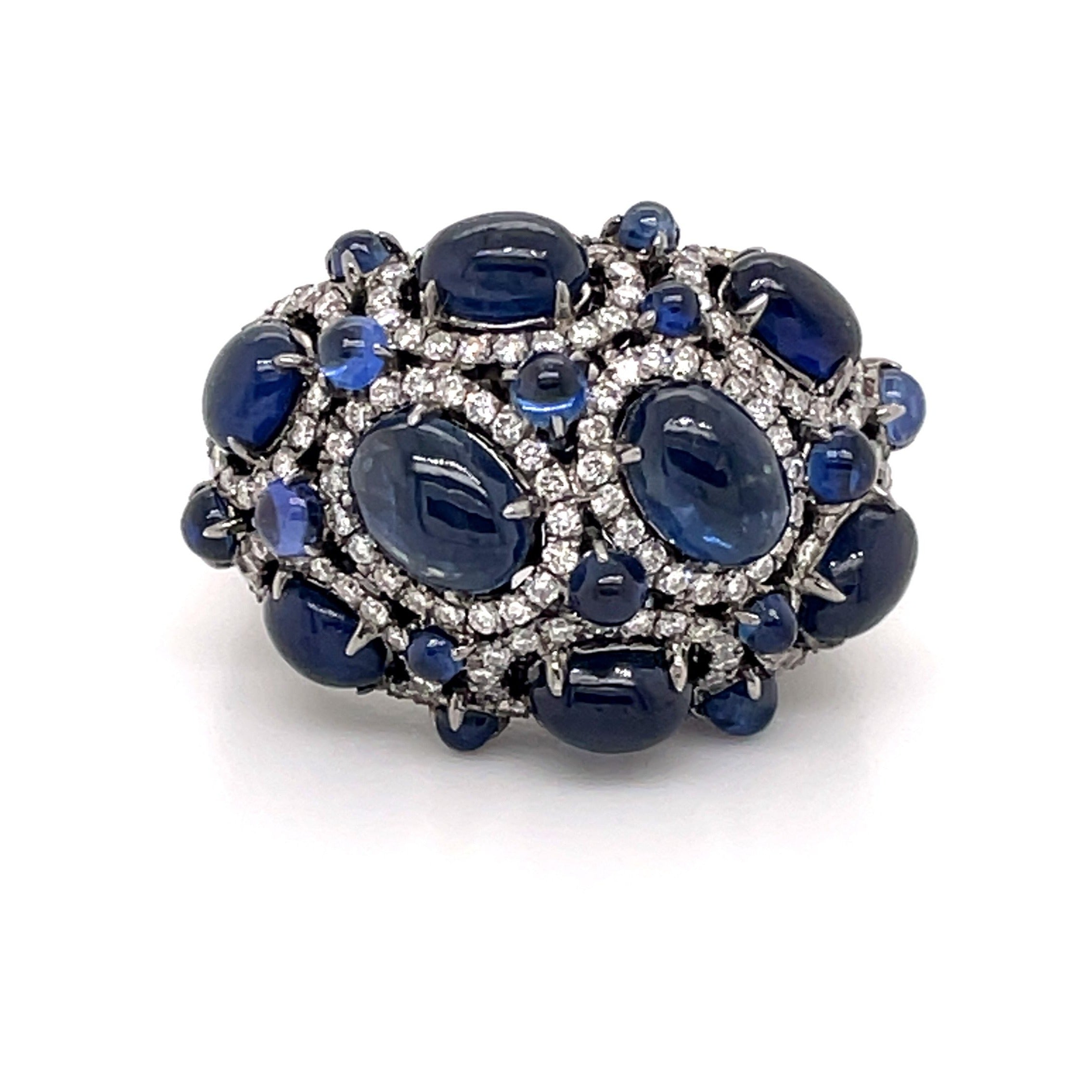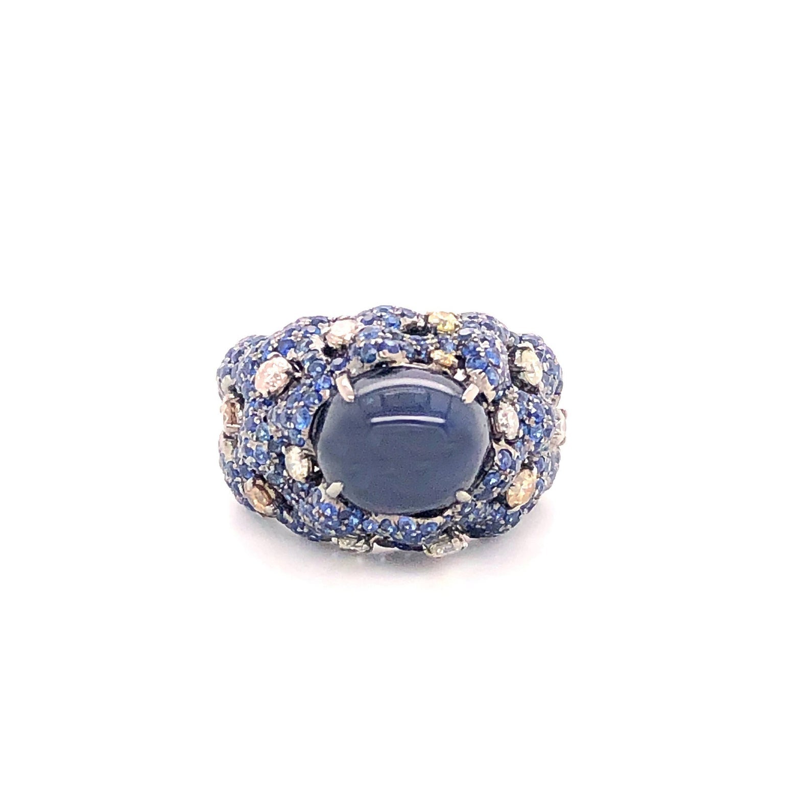 Sapphire and Fancy Diamonds Blue Galactic Ring