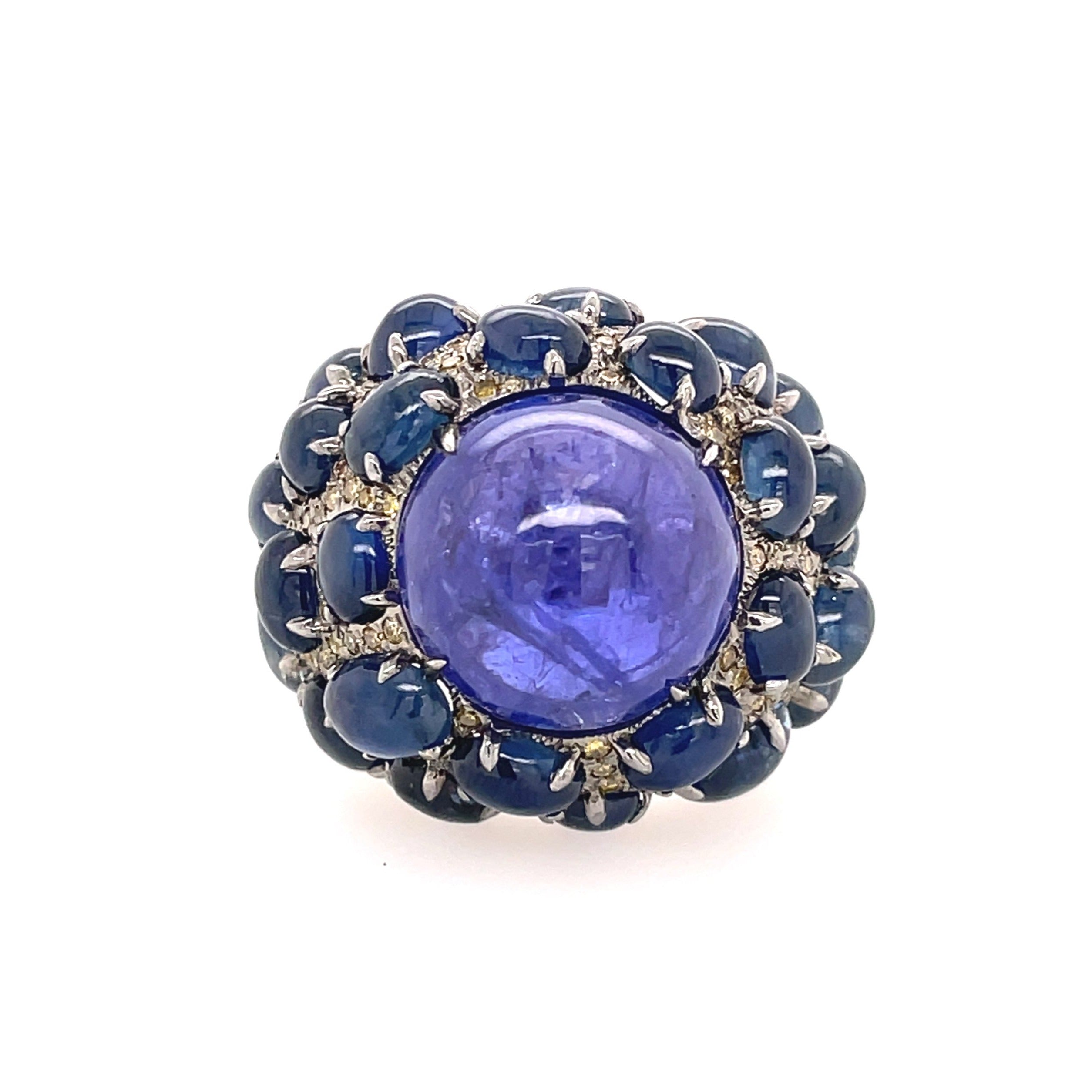 Fancy Diamonds and Sapphire Surrounded Tanzanite Hues of Blue Ring