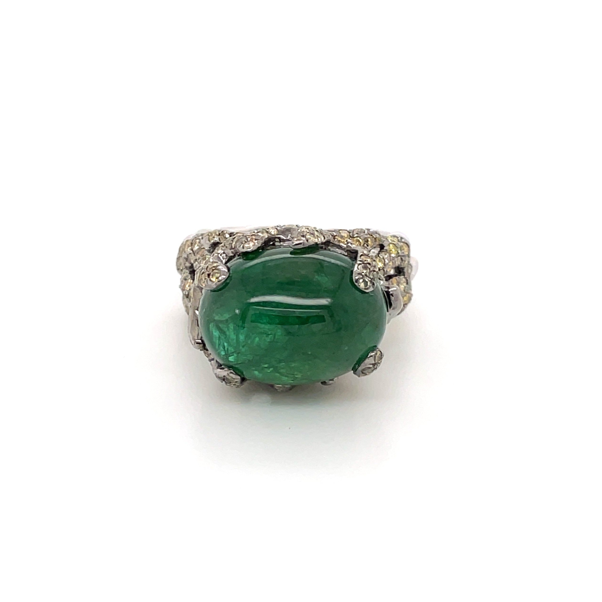Yellow Diamonds Flora Engulfed Emerald Ring