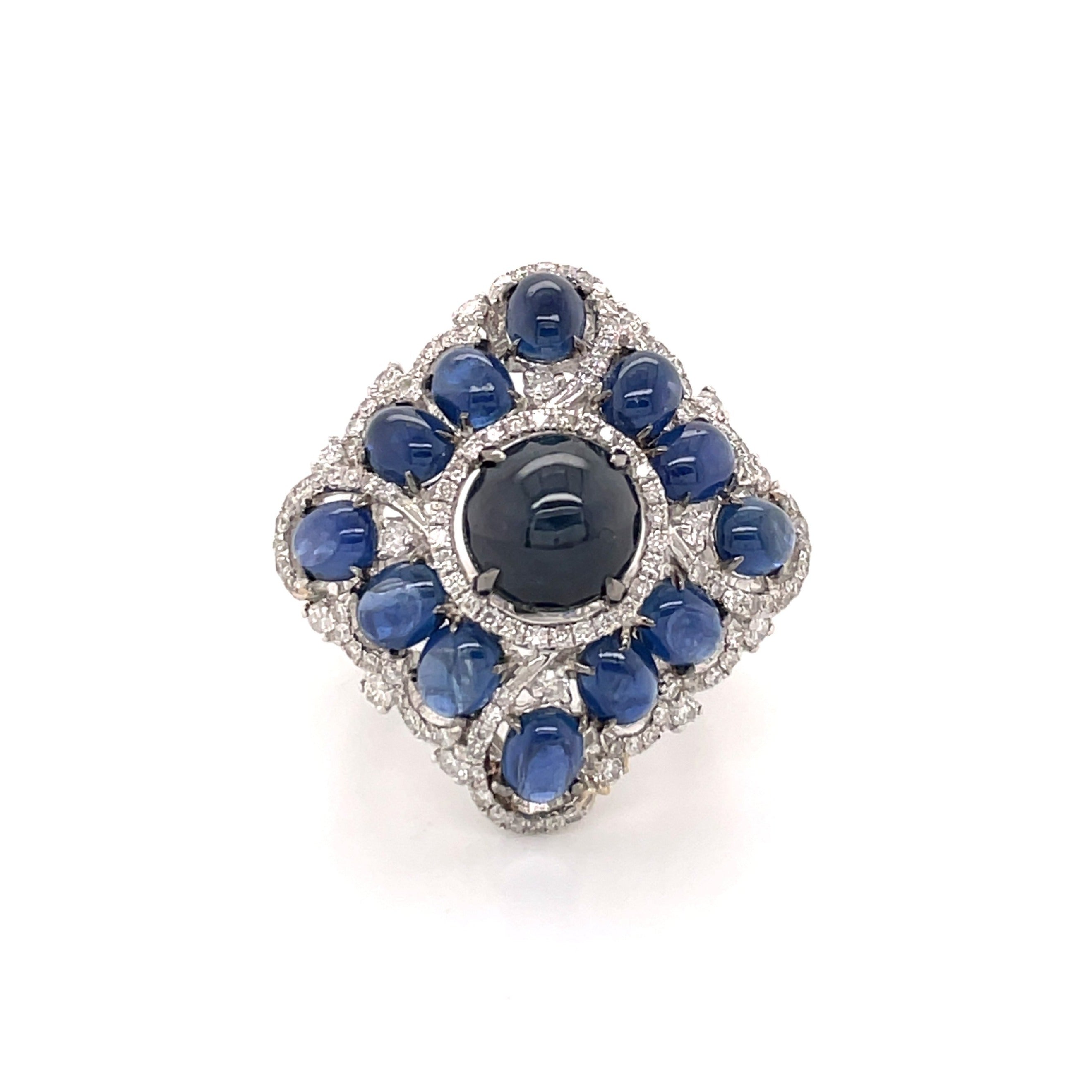 Star Sapphire and Oval Sapphires Encircled Diamonds Ring