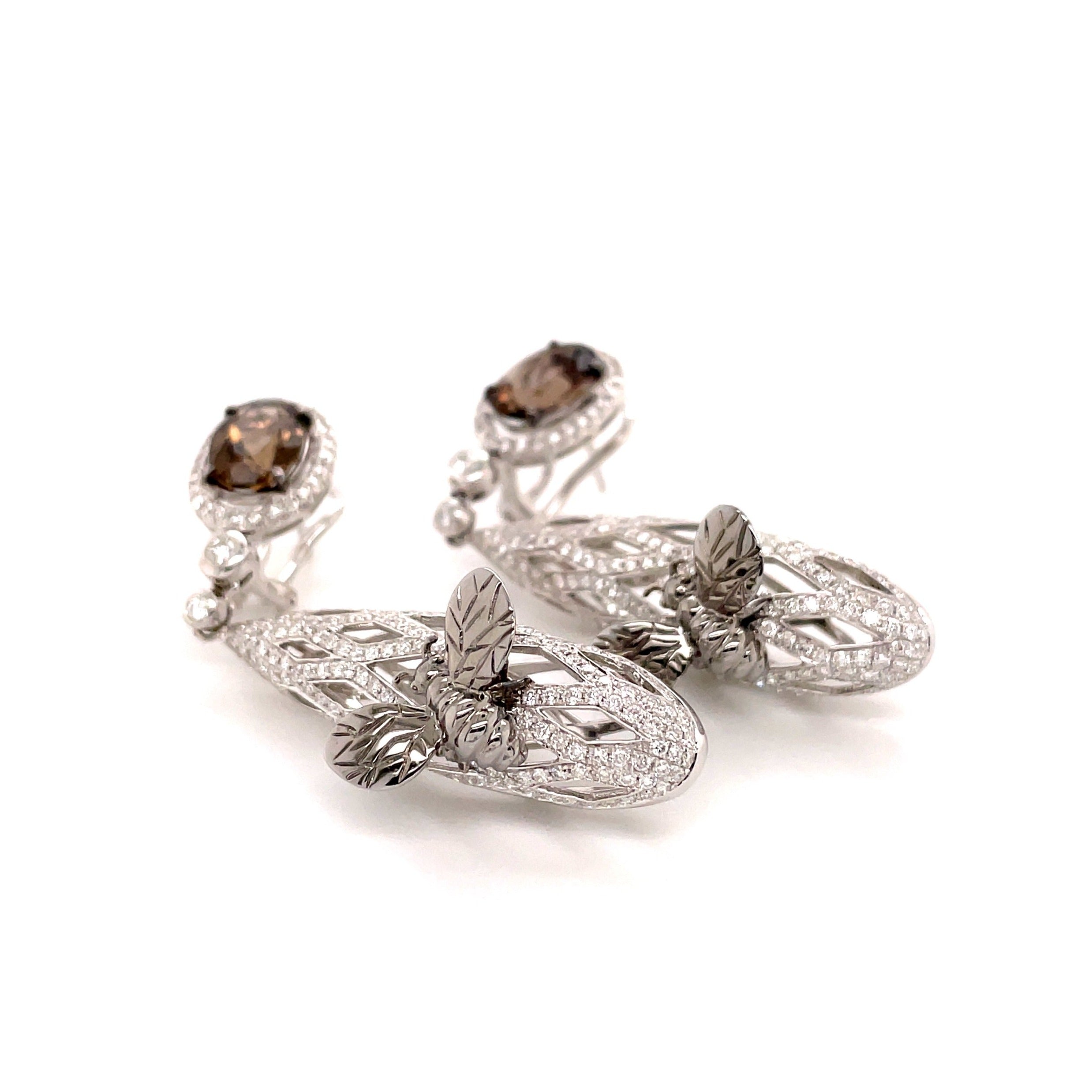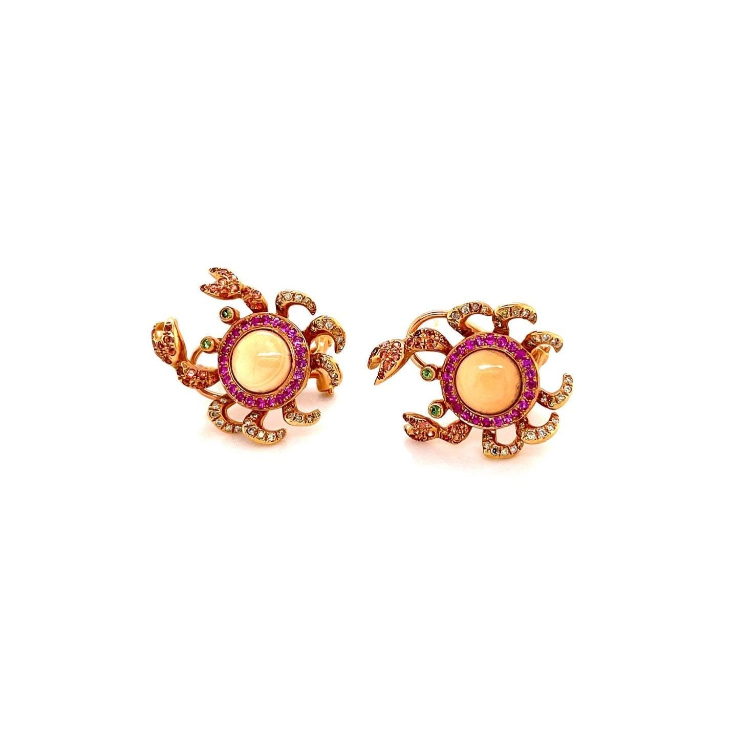 White Shell Tsavorite Pink Sapphire Orange Sapphire and Fancy Colored Diamond Crab Earrings