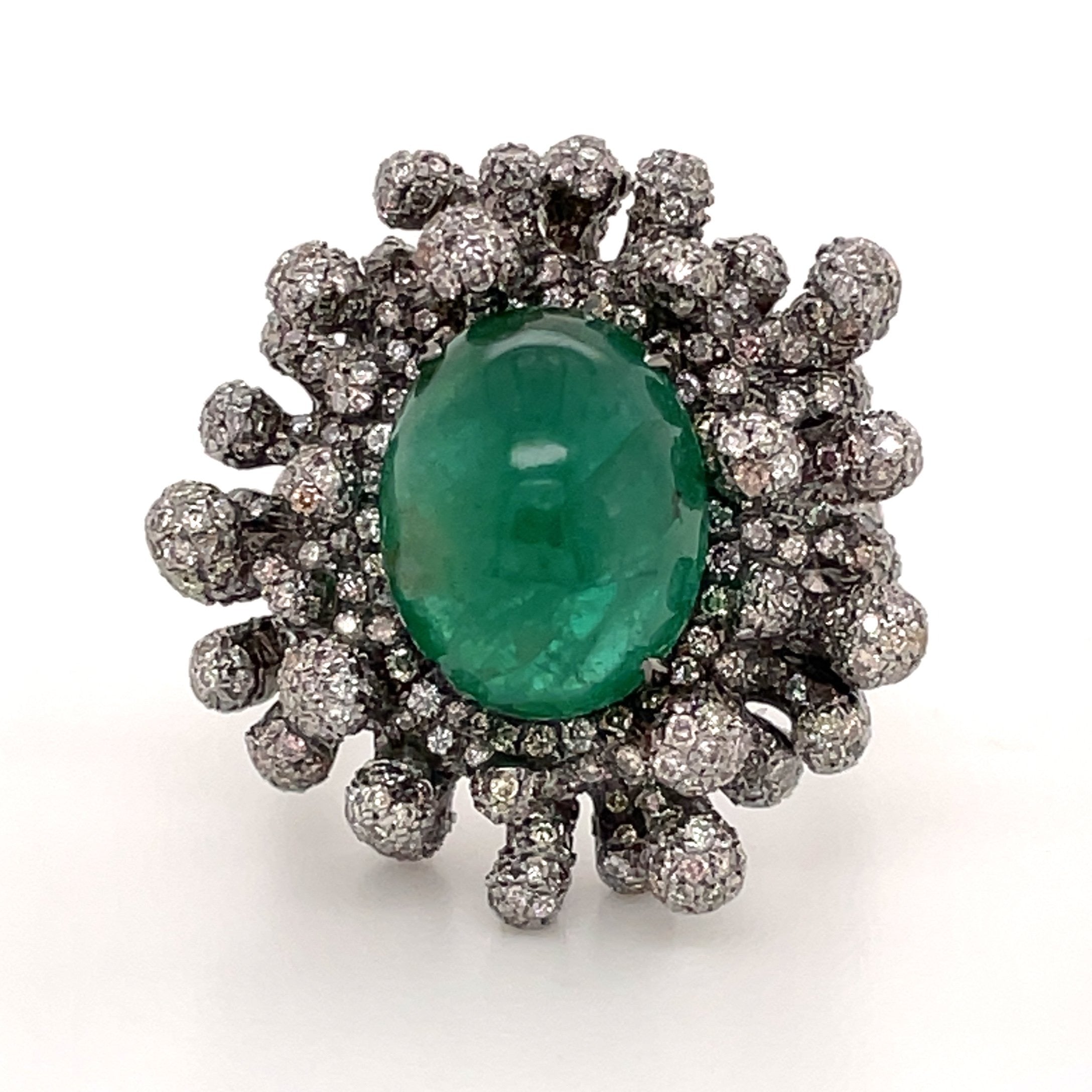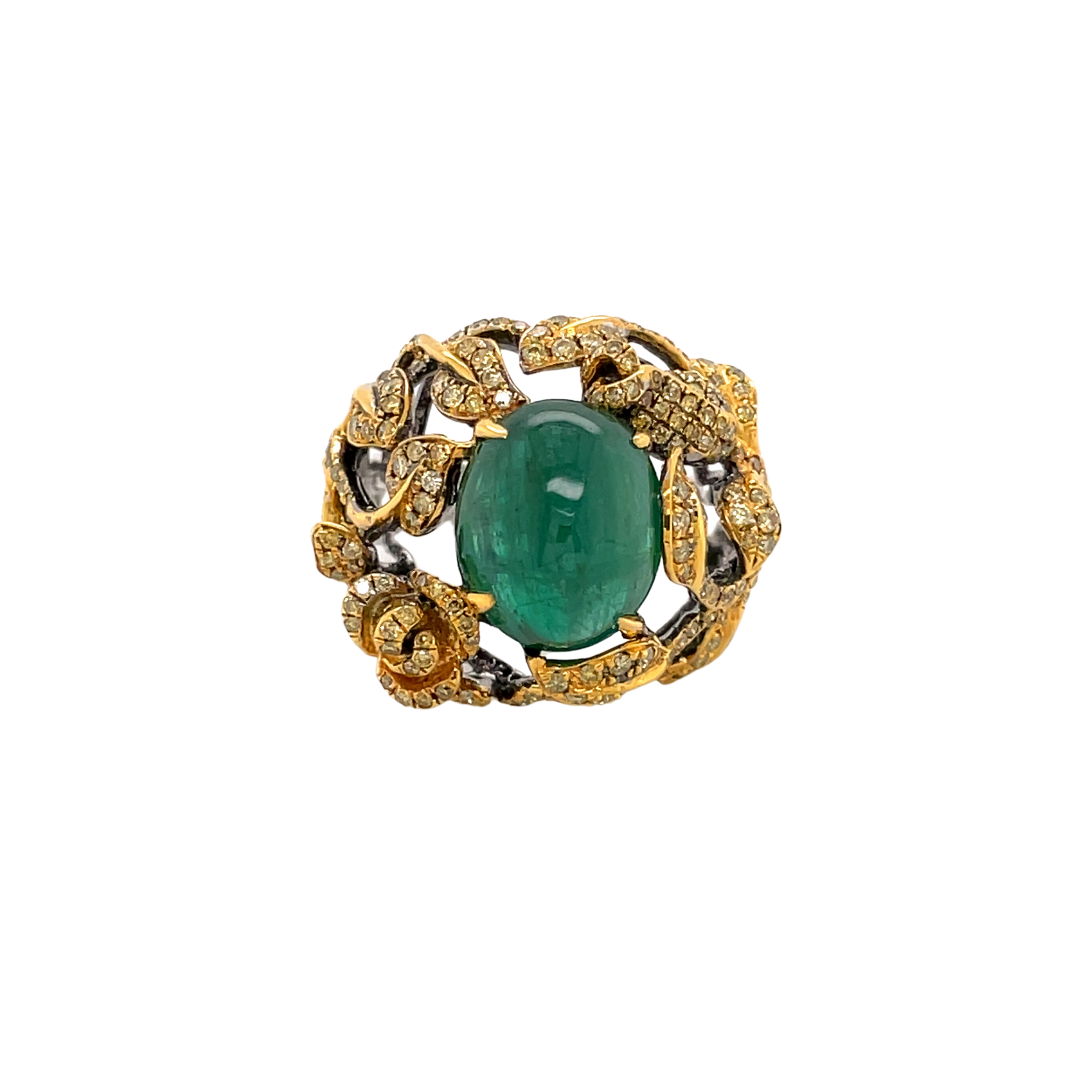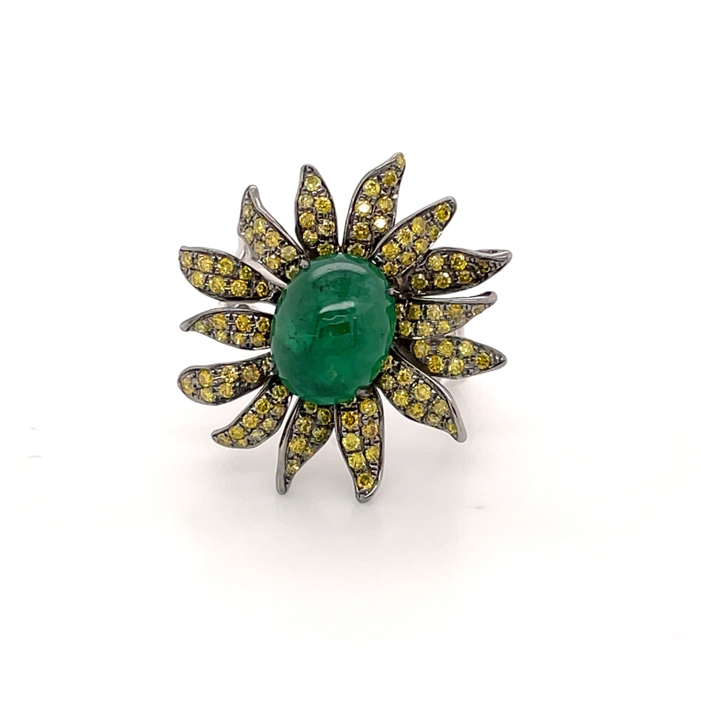 Yellow Diamonds Flora Engulfed Emerald Ring