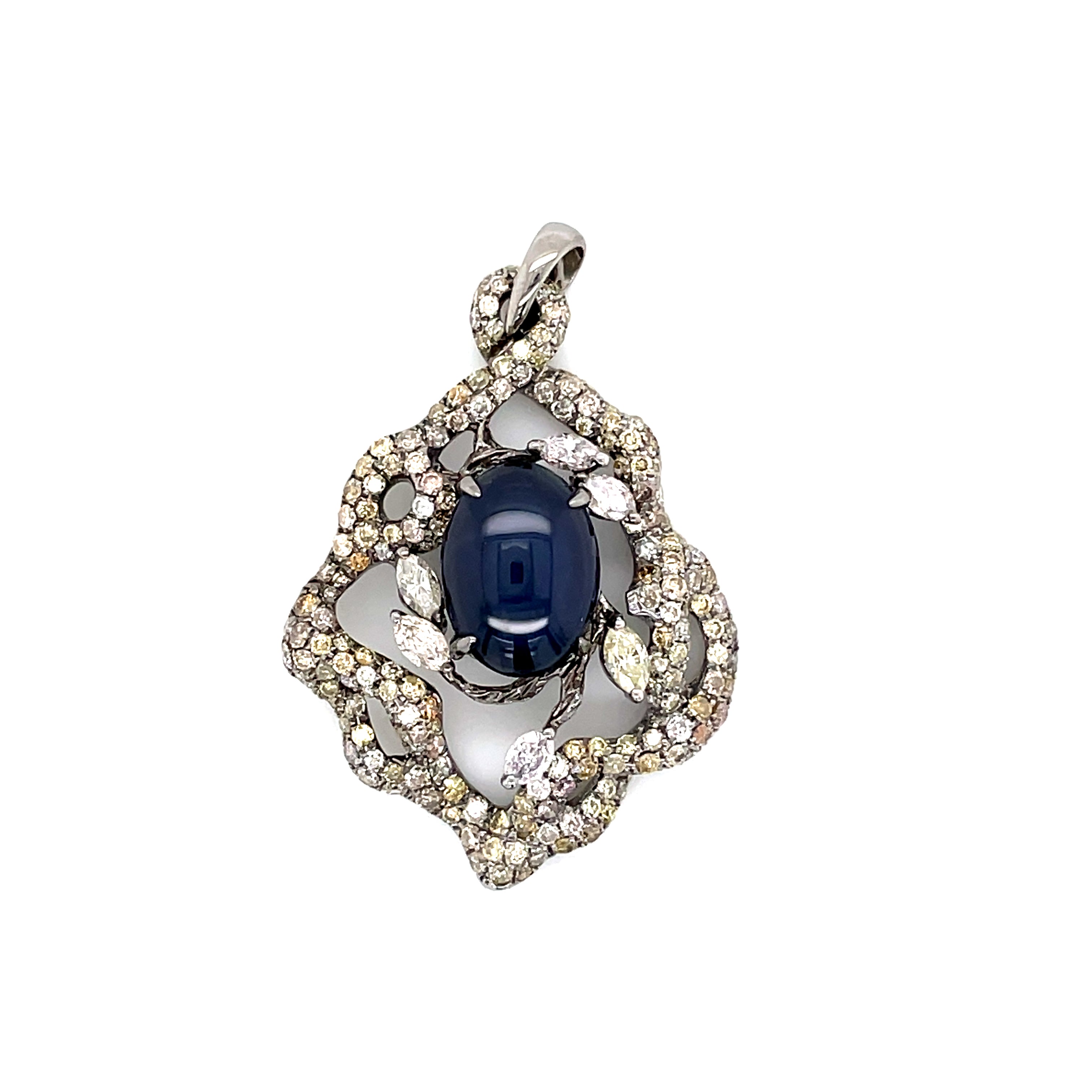 Star Sapphire and Fancy Color Diamonds Floral Cocktail Pendant