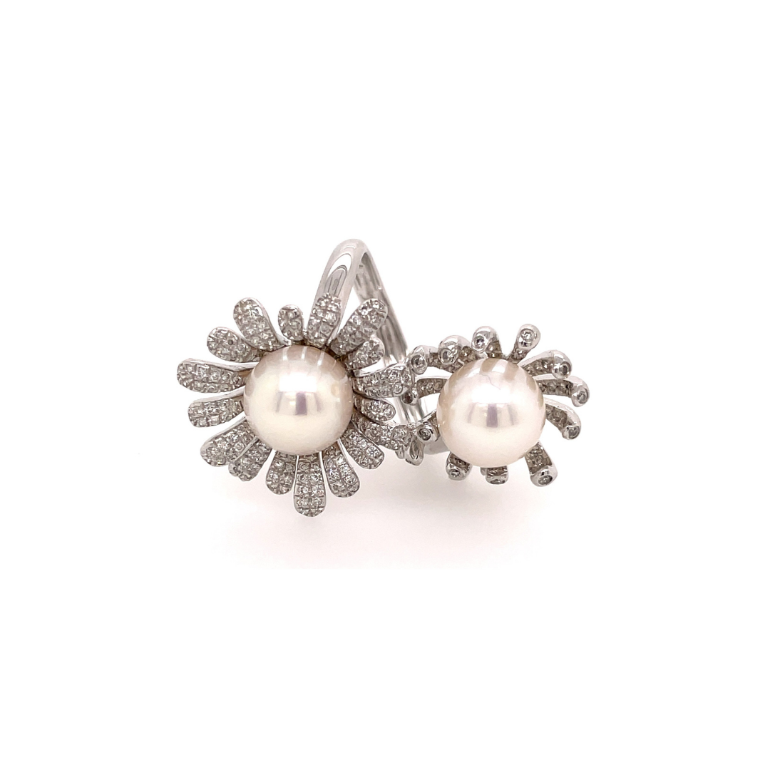 Cultured Pearls and White Diamonds Blooming Flower Ring