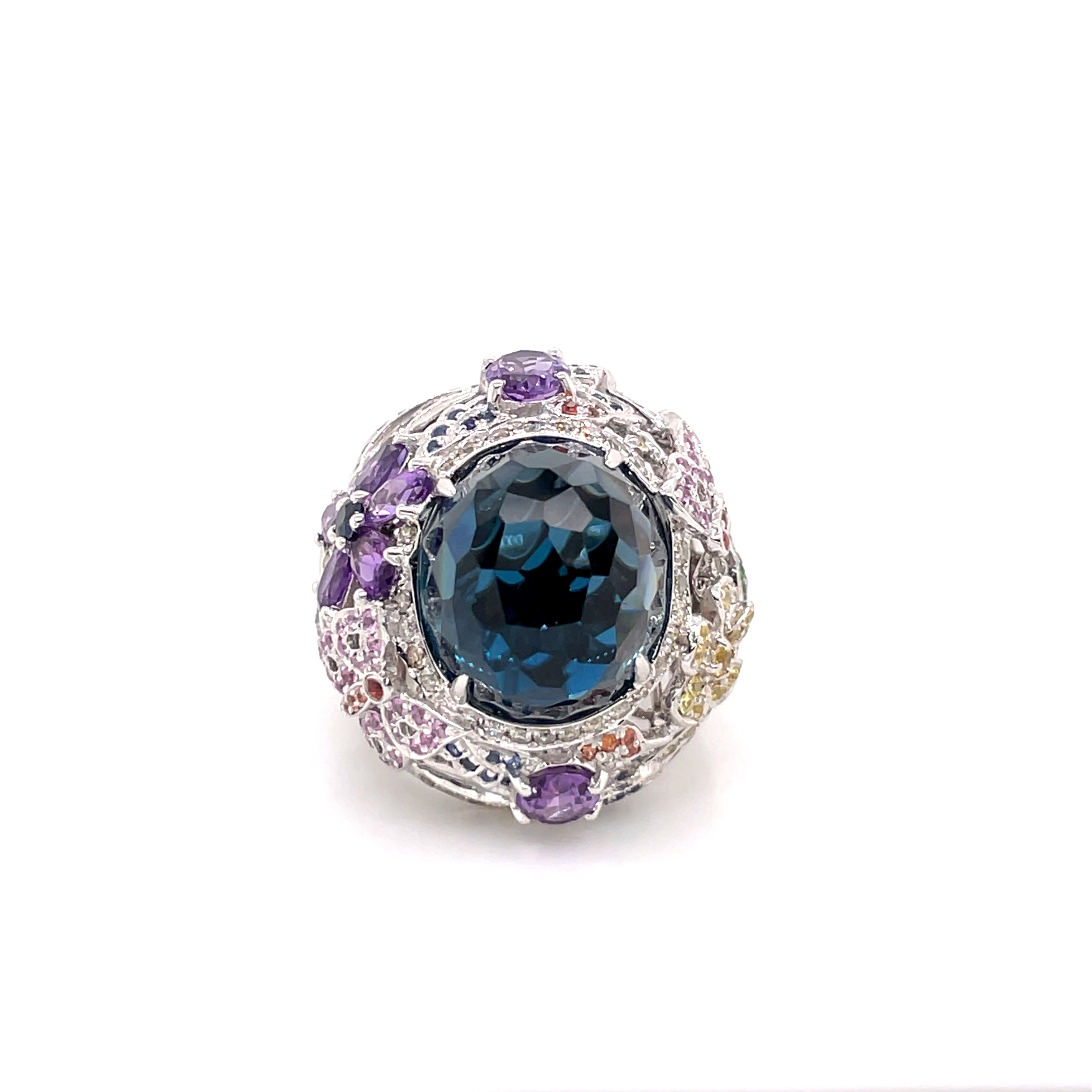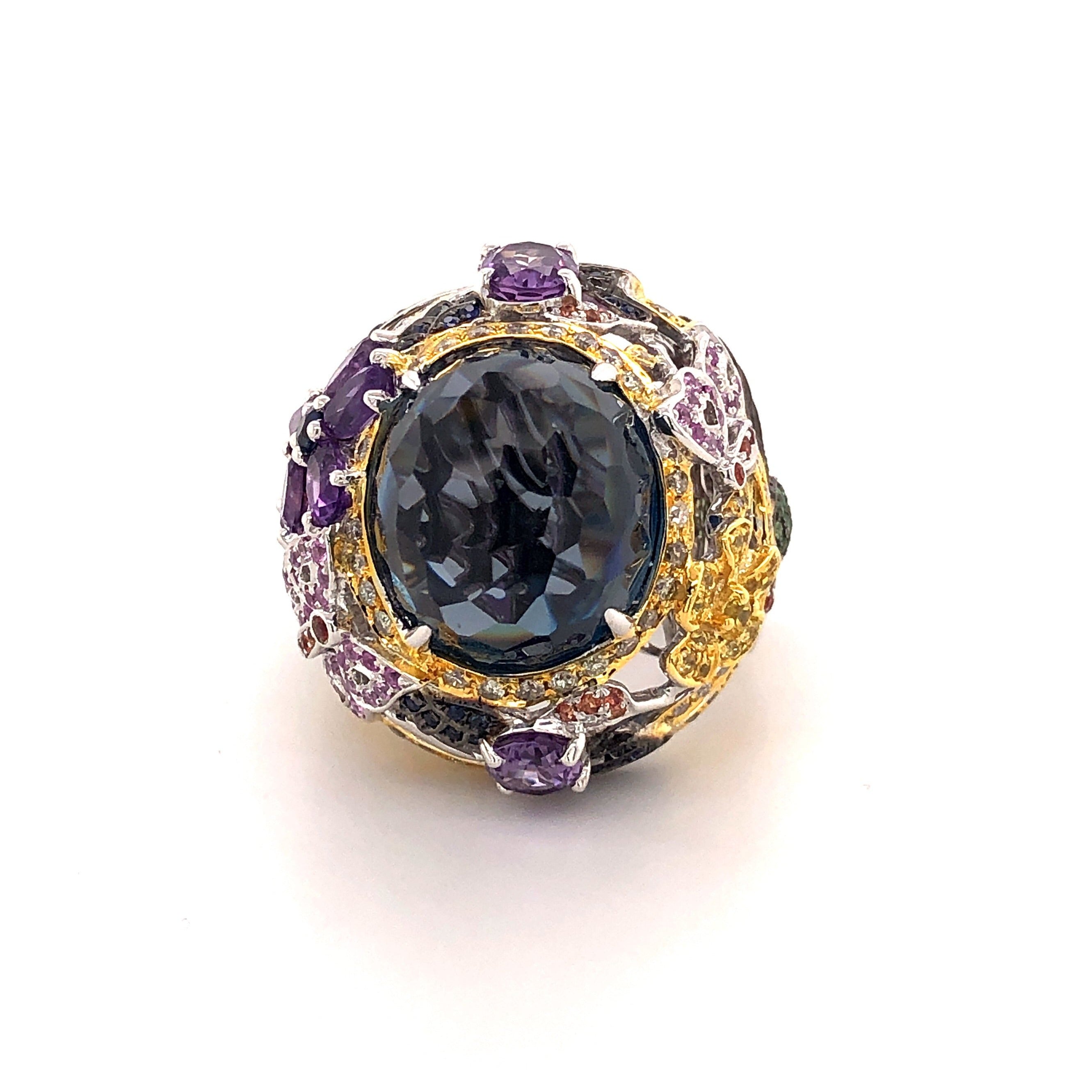 London Blue Topaz Fancy Diamonds Amethysts and Sapphire Enchanted Garden Ring