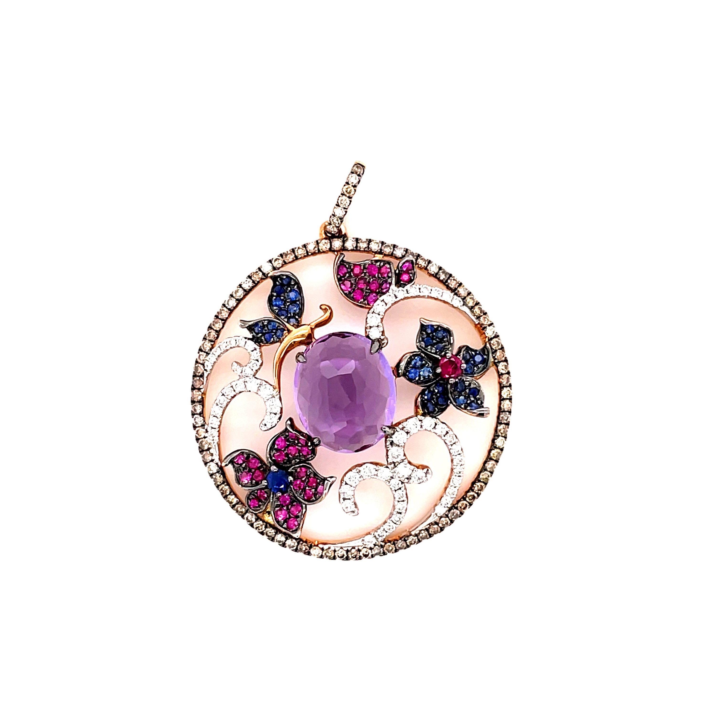 Amethyst Sapphire Ruby and Diamond Floral Pendant