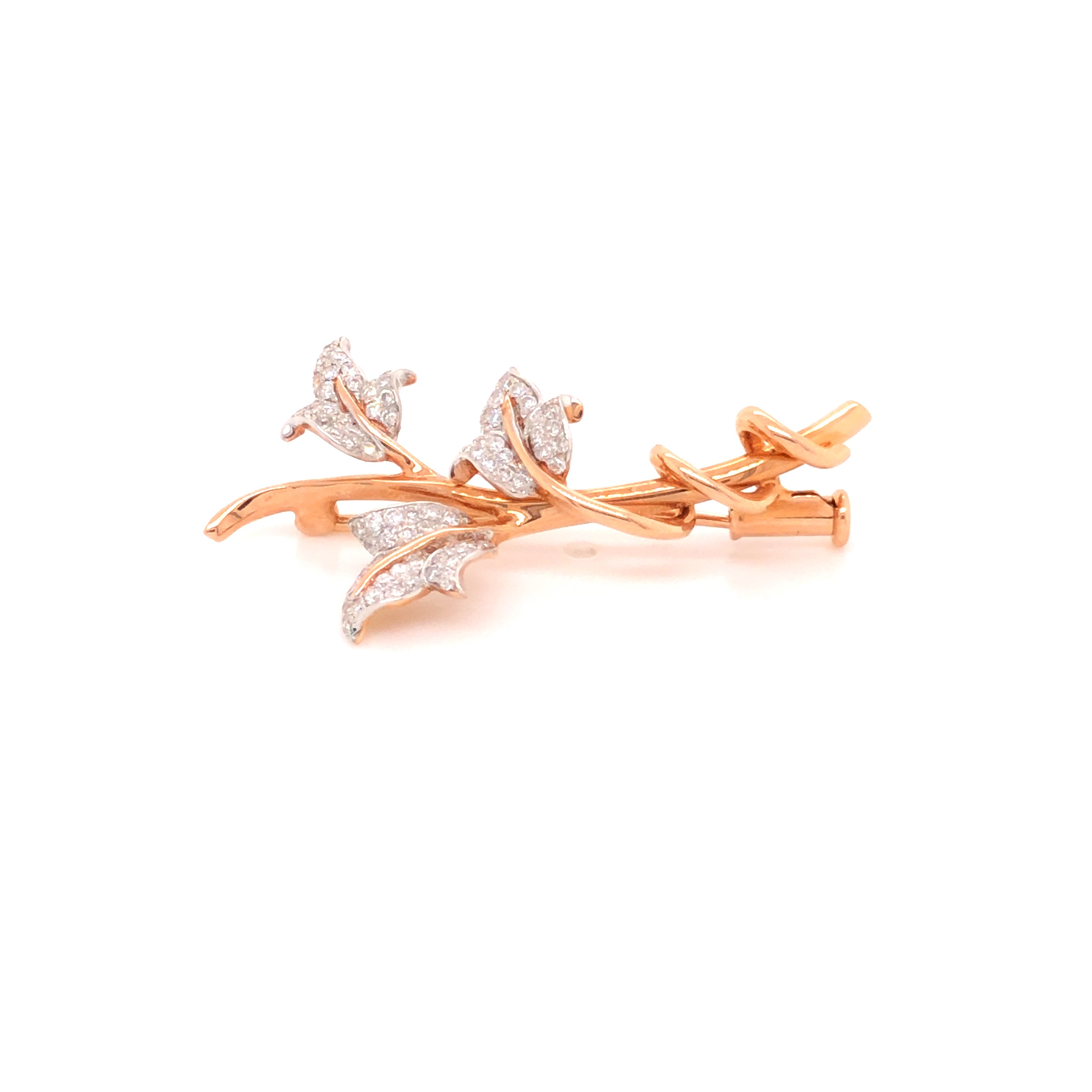 White Diamonds Leaf and Rose Gold Twig Brooch
