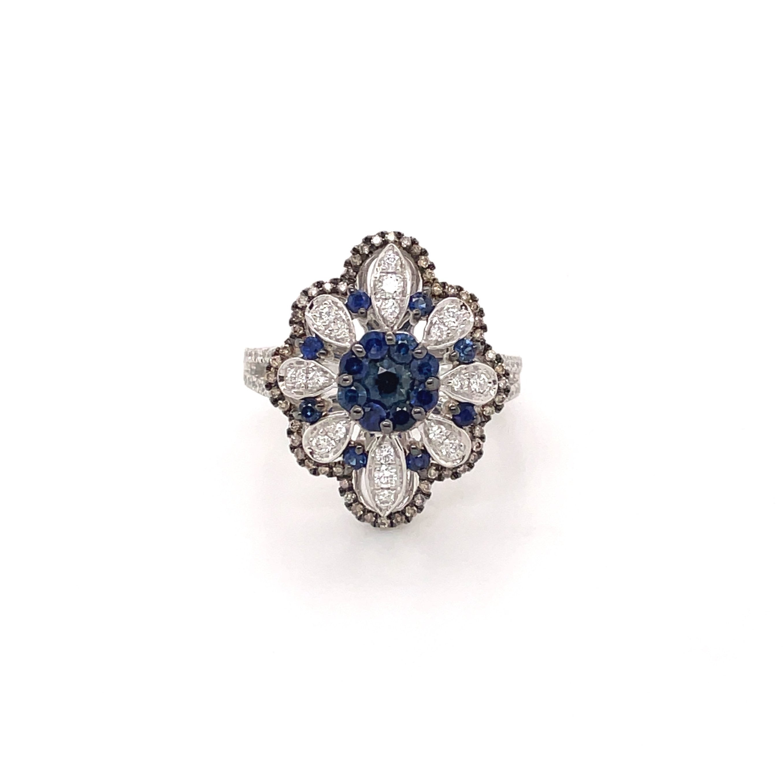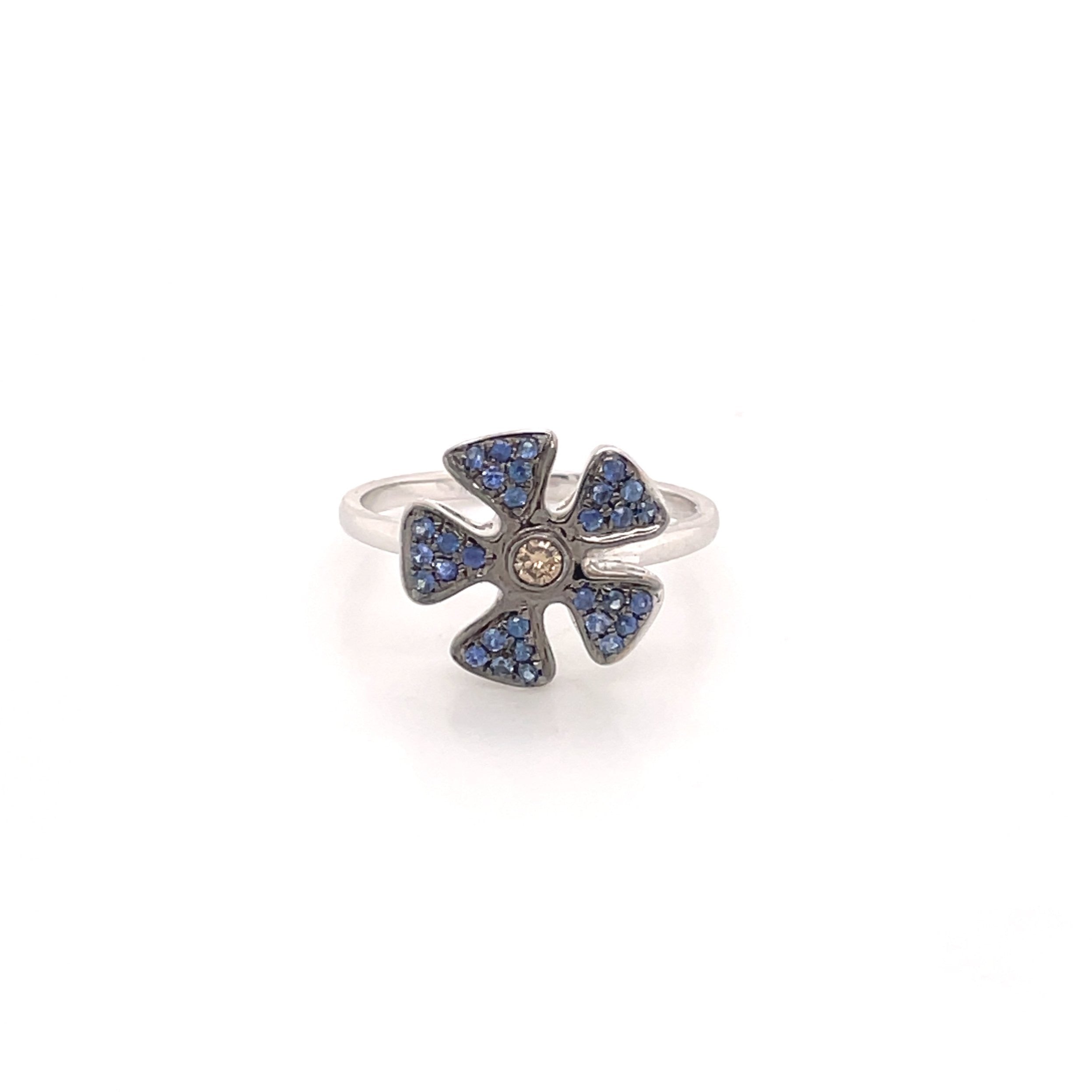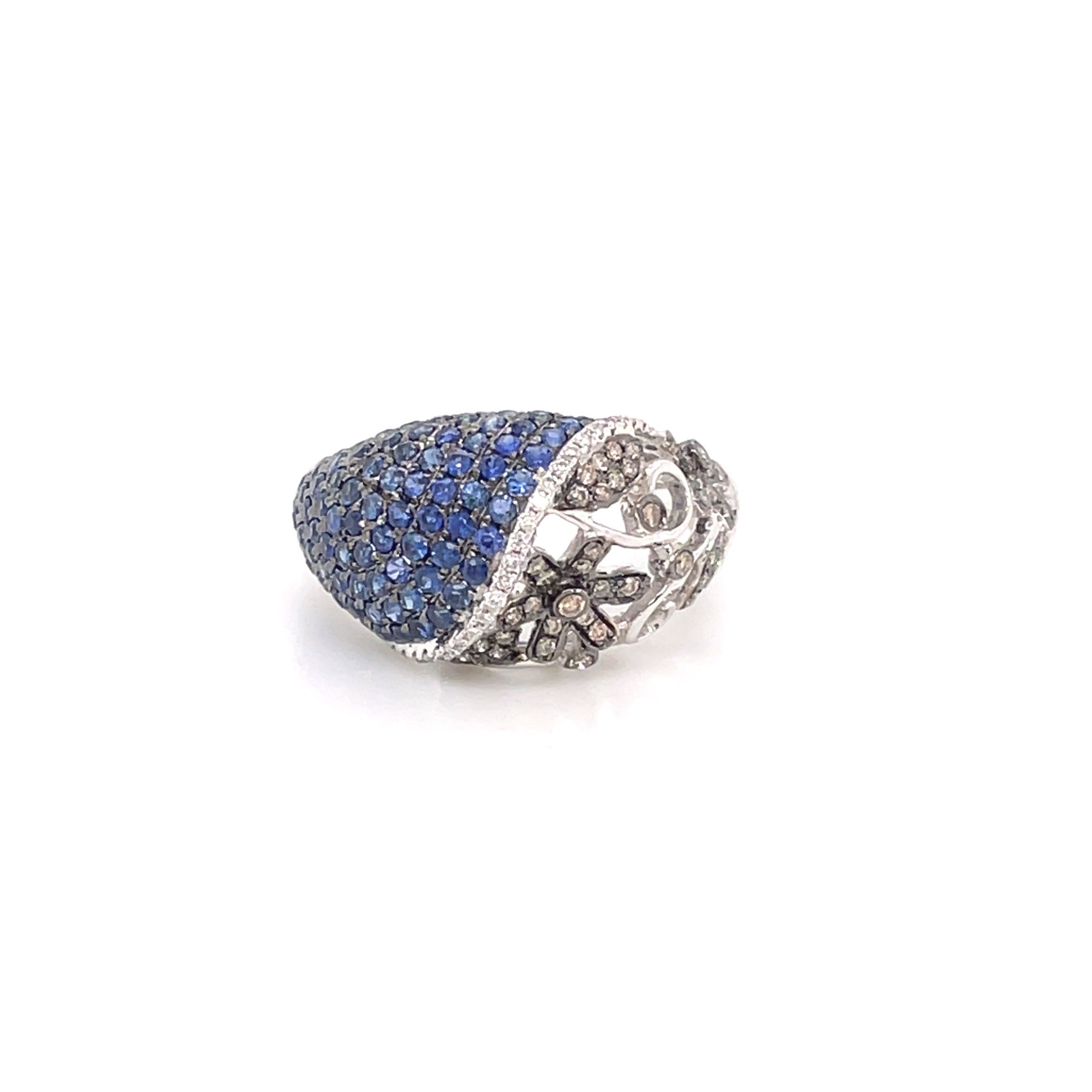 Sapphires and Diamonds Floral Ring - Floral Band Wedding Ring