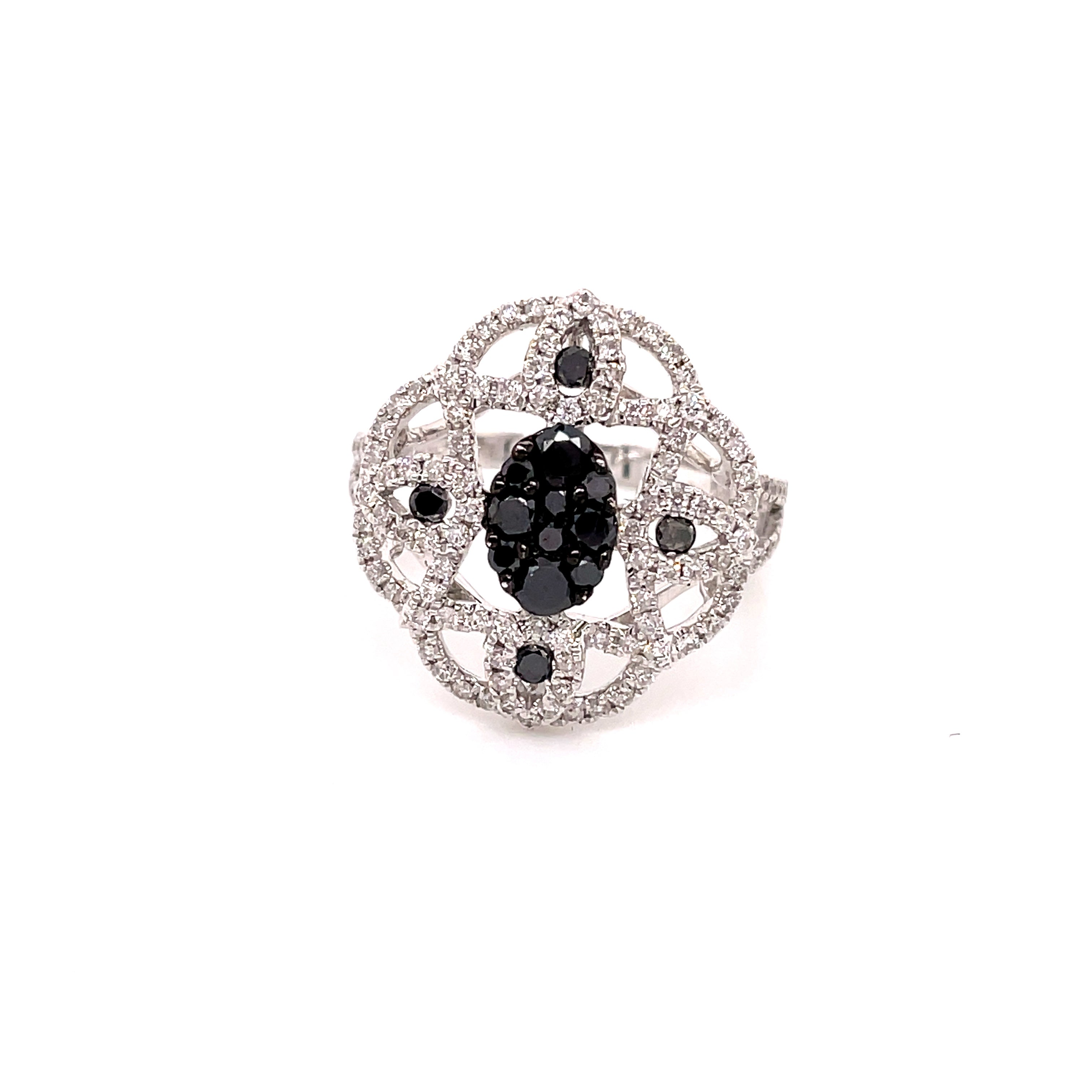 White Diamonds and Black Diamonds Floral Ring - Luxury Wedding Ring