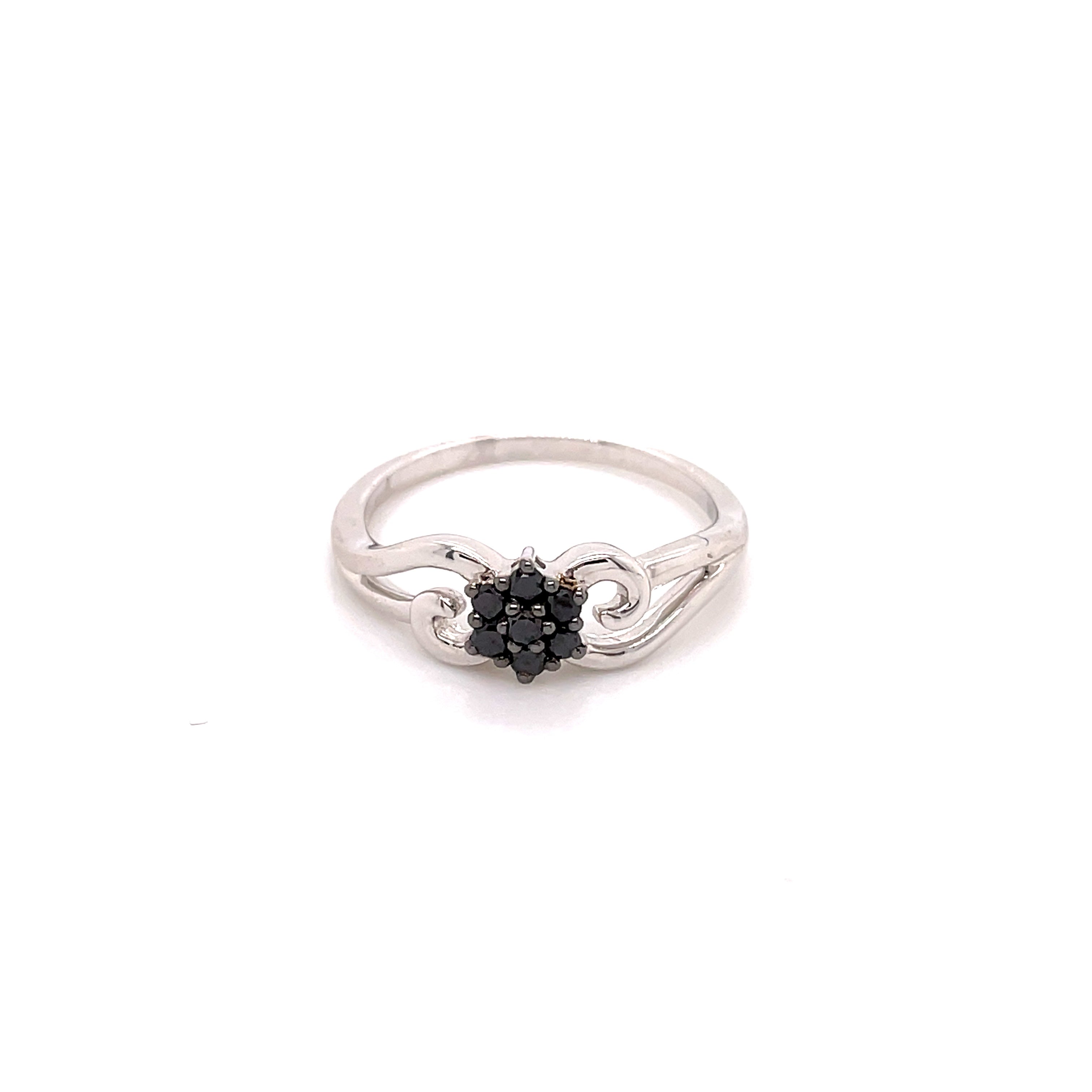 White Diamonds and Black Diamonds Floral Ring - Luxury Wedding Ring