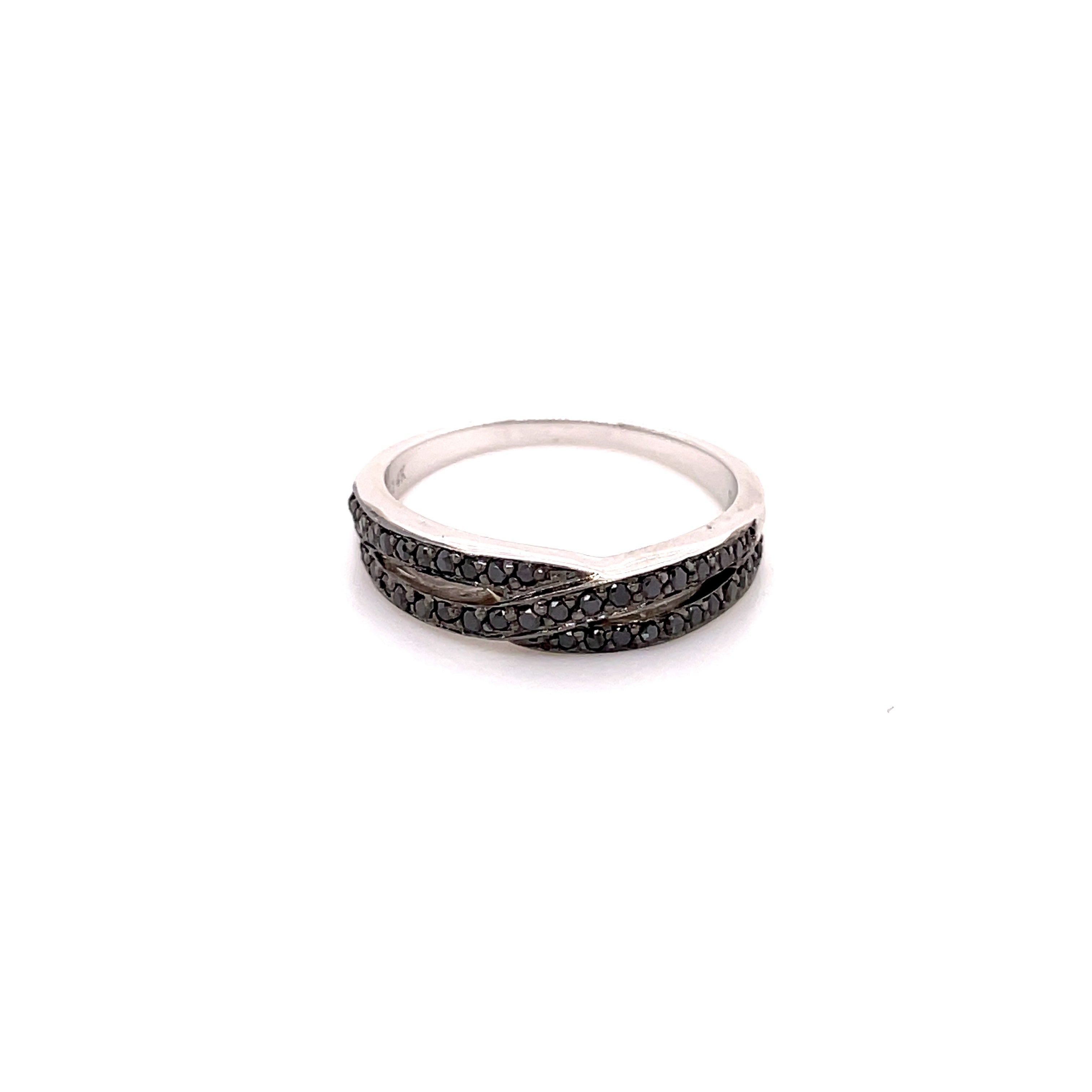 Black Diamond and White Diamond Criss Cross Wedding Band and Engagement Ring